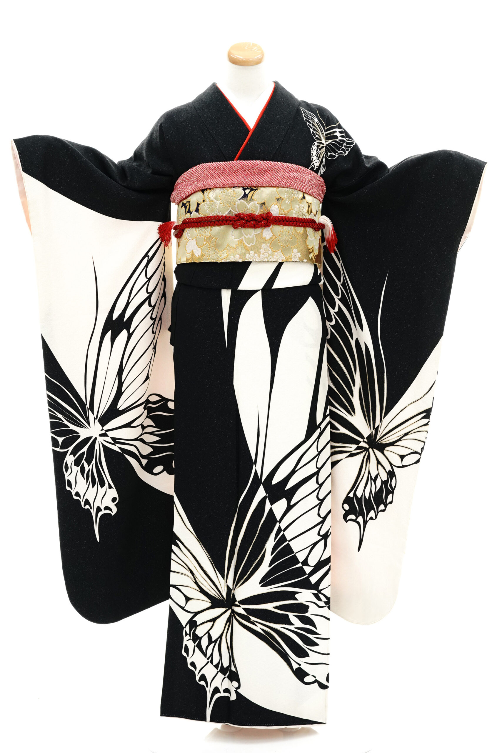 蝶々柄の振袖は、その軽やかさと繊細さから、帯や小物、ヘアメイクとの組み合わせ次第で印象が大きく変わります。