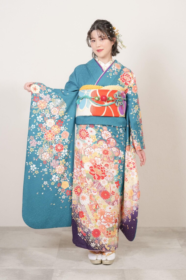水色の振袖は、その色味の幅広さや柄との組み合わせによって、さまざまな表情を持ちます。